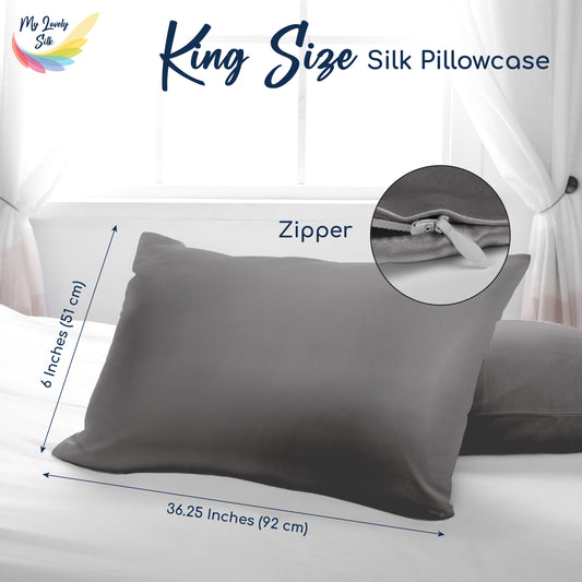 MY LOVELY SILK: KING SIZE SILK PILLOWCASE 22 MOMME (Dark Gray)